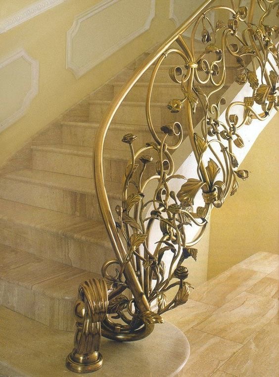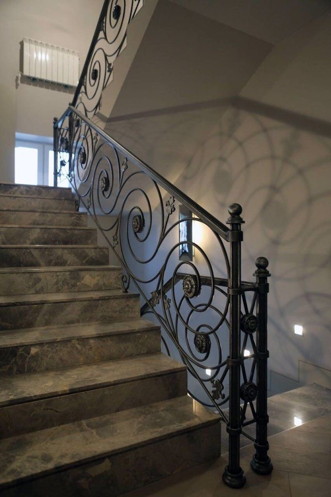 Кованые перила, по мнению большинства дизайнеров и архитекторов, являются одними из наилучших вариантов ограждений для лестниц.