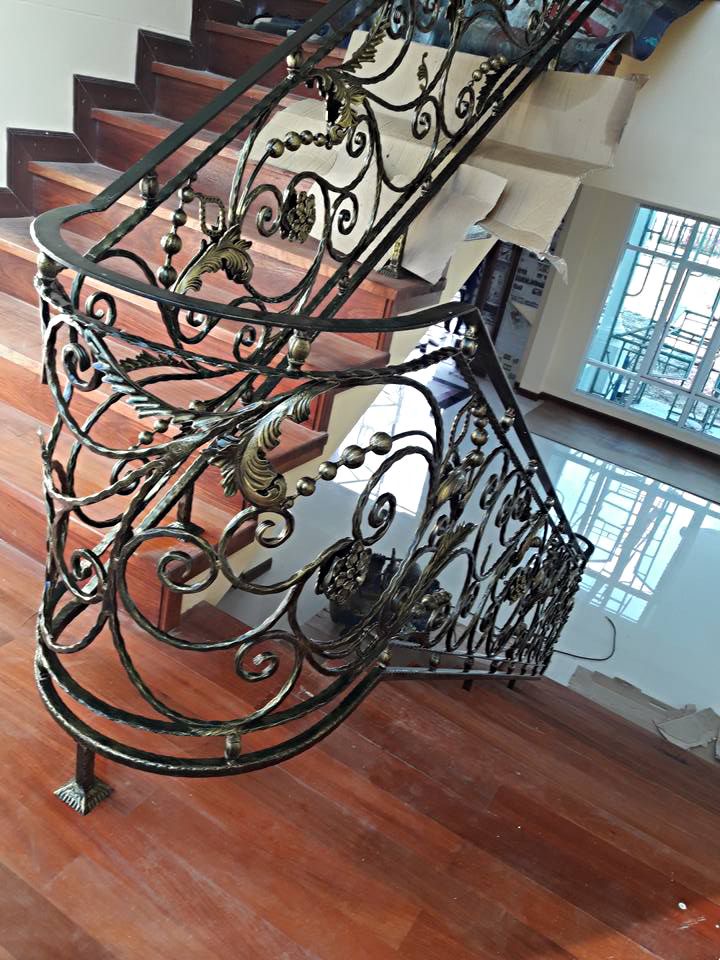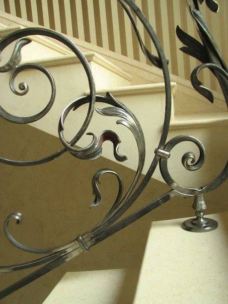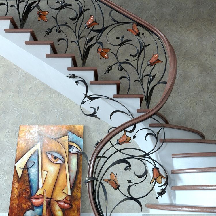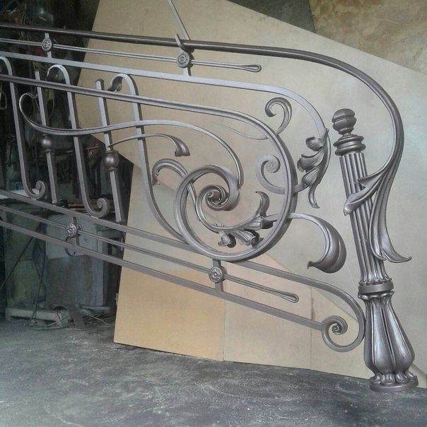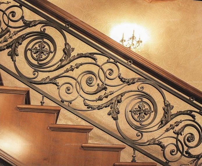 Кованые перила это тот элемент интерьера, который всегда привлекает внимание и задает основу дизайна. Кованые перила имеют бесконечное множество решений рисунка и ограничены лишь фантазией человека. Так как горячее железо подобно глине принимает любые формы в опытных руках мастера. Каждый элемент кованых перил нашего производства несет в себе огромный труд истинных мастеров художественного ремесла. Мы не перестаем приятно удивлять клиентов, которые заказывают у нас кованые ограждения для лестниц. Так как кованые перила изготовленные нами помимо высокого качества выполнения несут в себе неповторимый эксклюзивный рисунок.